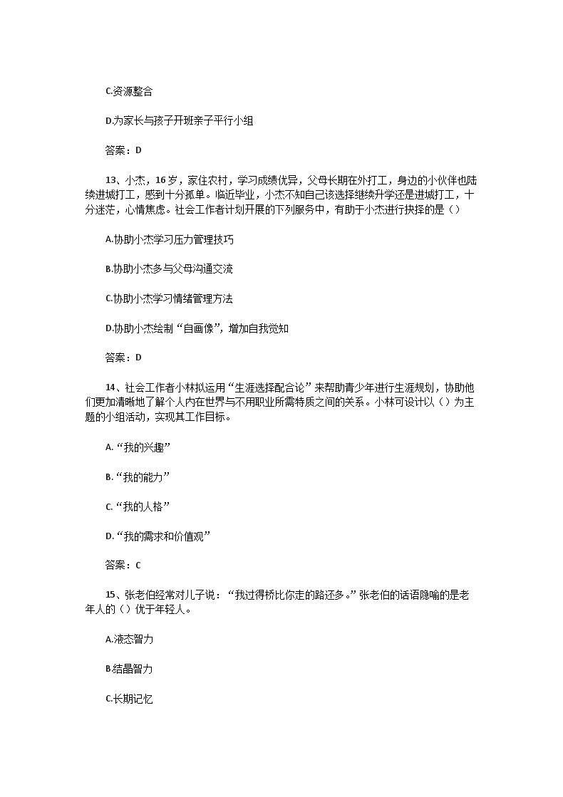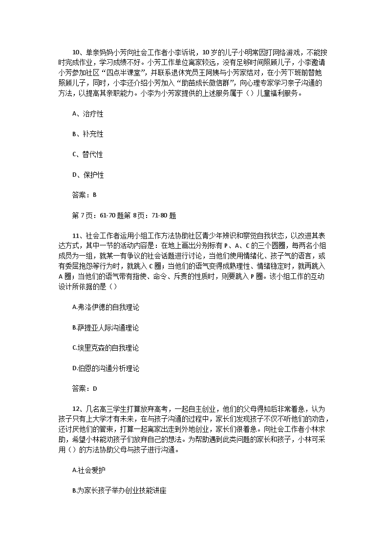 【文档名称】 2017年初级社会工作者工作实务真题及答案(Word版).doc