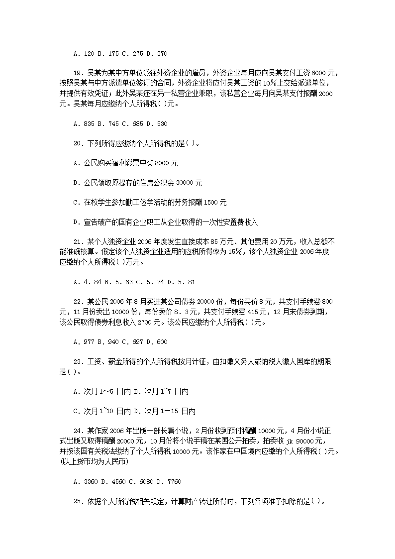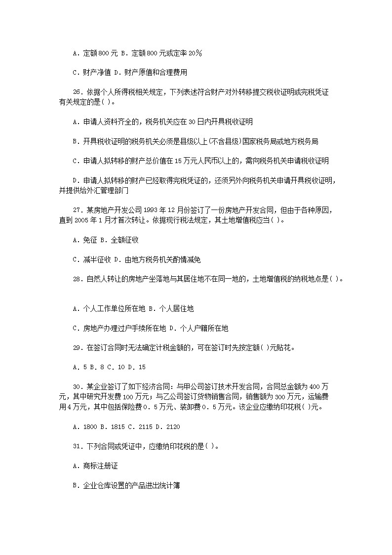 【文档名称】 2007年注册税务师考试税法二真题及答案(Word版).doc