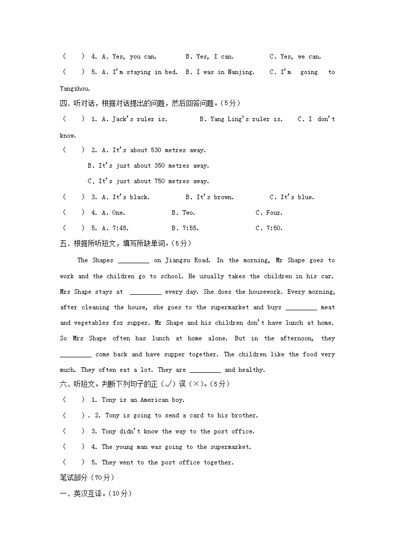 【文档名称】 江苏小升初英语真题听力和笔试(Word版).doc