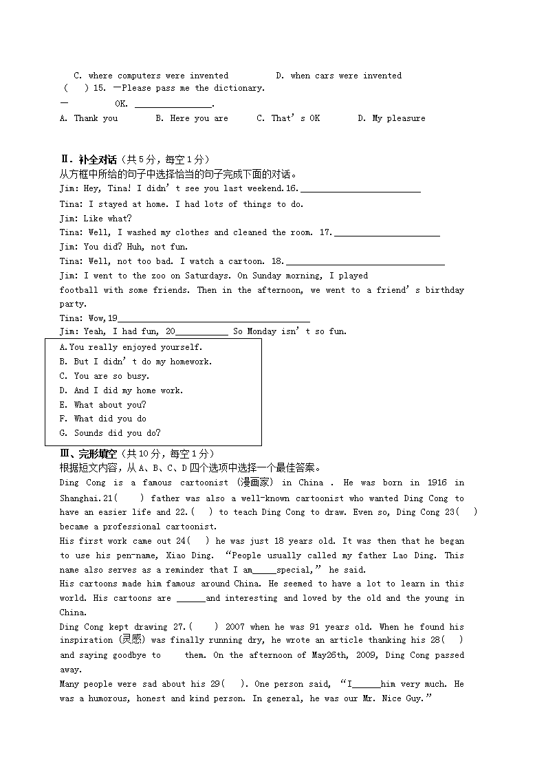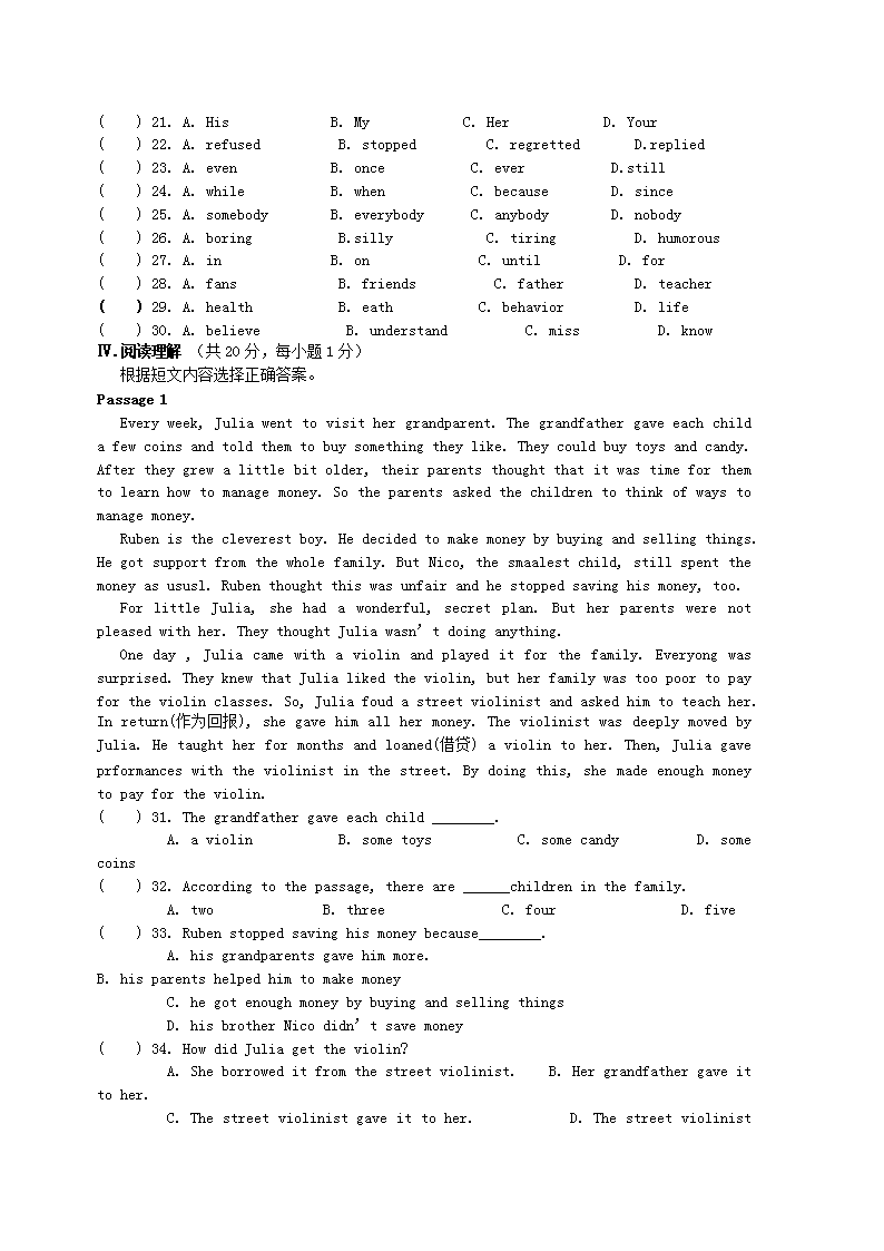 【文档预览】 无忧考网整理发布2012年辽宁省抚顺市中考英语真题及答案(Word版),前五页预览如下: