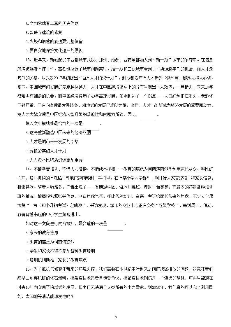 【文档名称】 2019年上海公务员行测考试真题及答案A类(Word版).doc