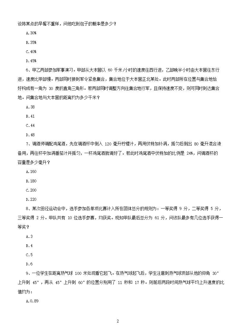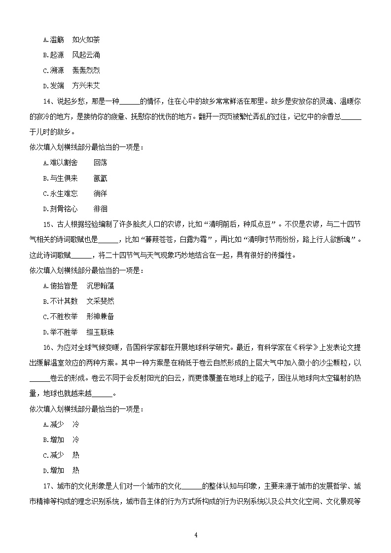 【文档名称】 2019年天津公务员行测考试真题及答案(Word版).doc