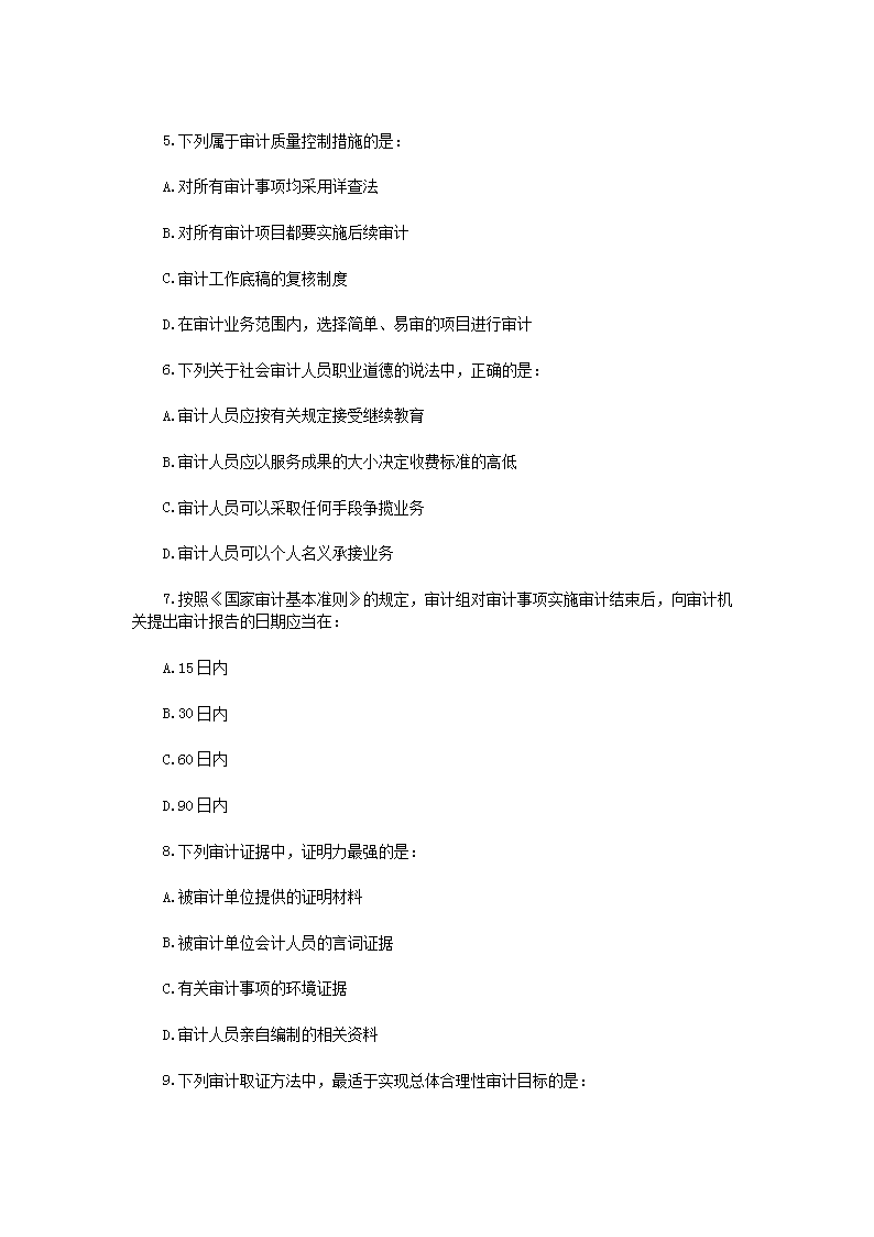 【文档名称】 2005年中级审计师考试审计理论与实务真题(Word版).doc