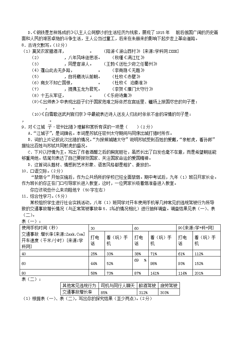 【文档预览】 无忧考网整理发布2015年辽宁省锦州市中考语文真题及答案(Word版),前五页预览如下: