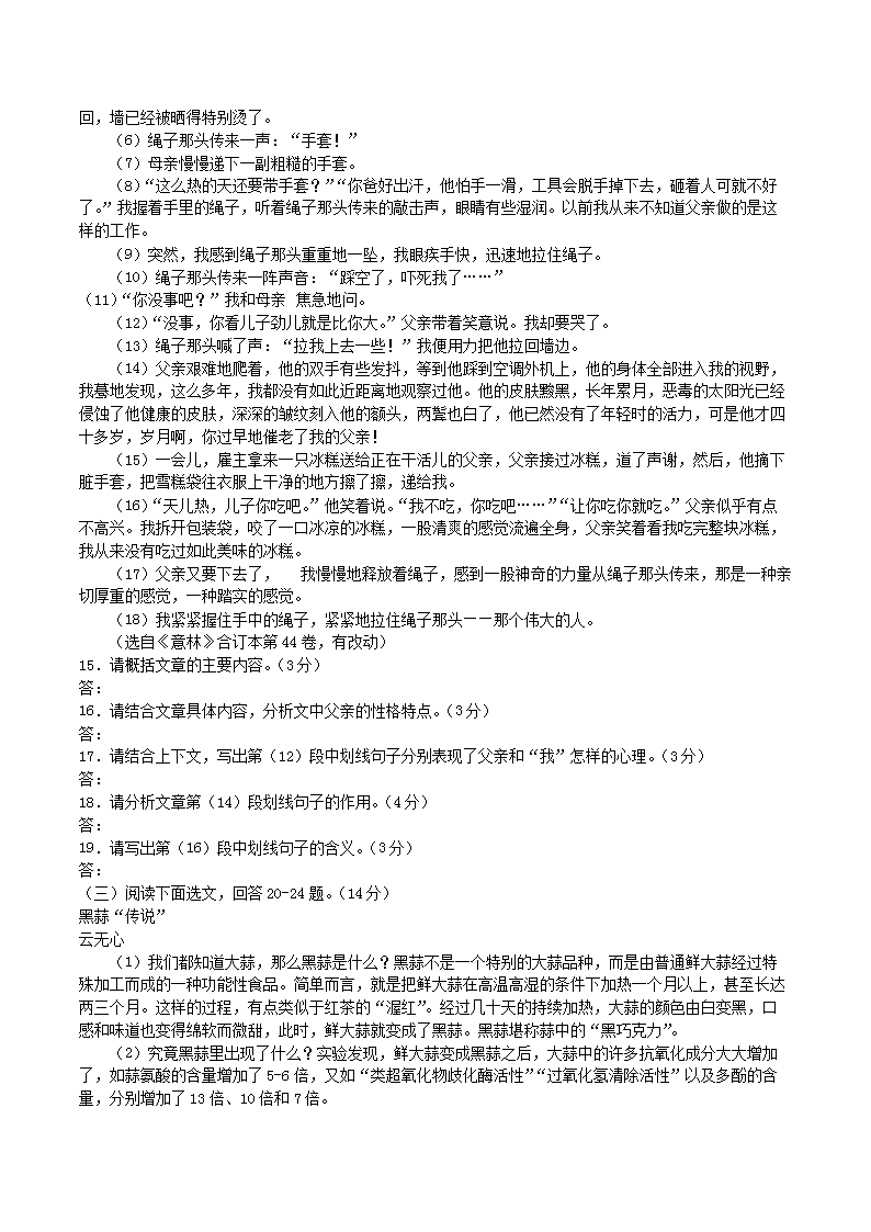 【文档名称】 2015年辽宁省锦州市中考语文真题及答案(Word版).doc