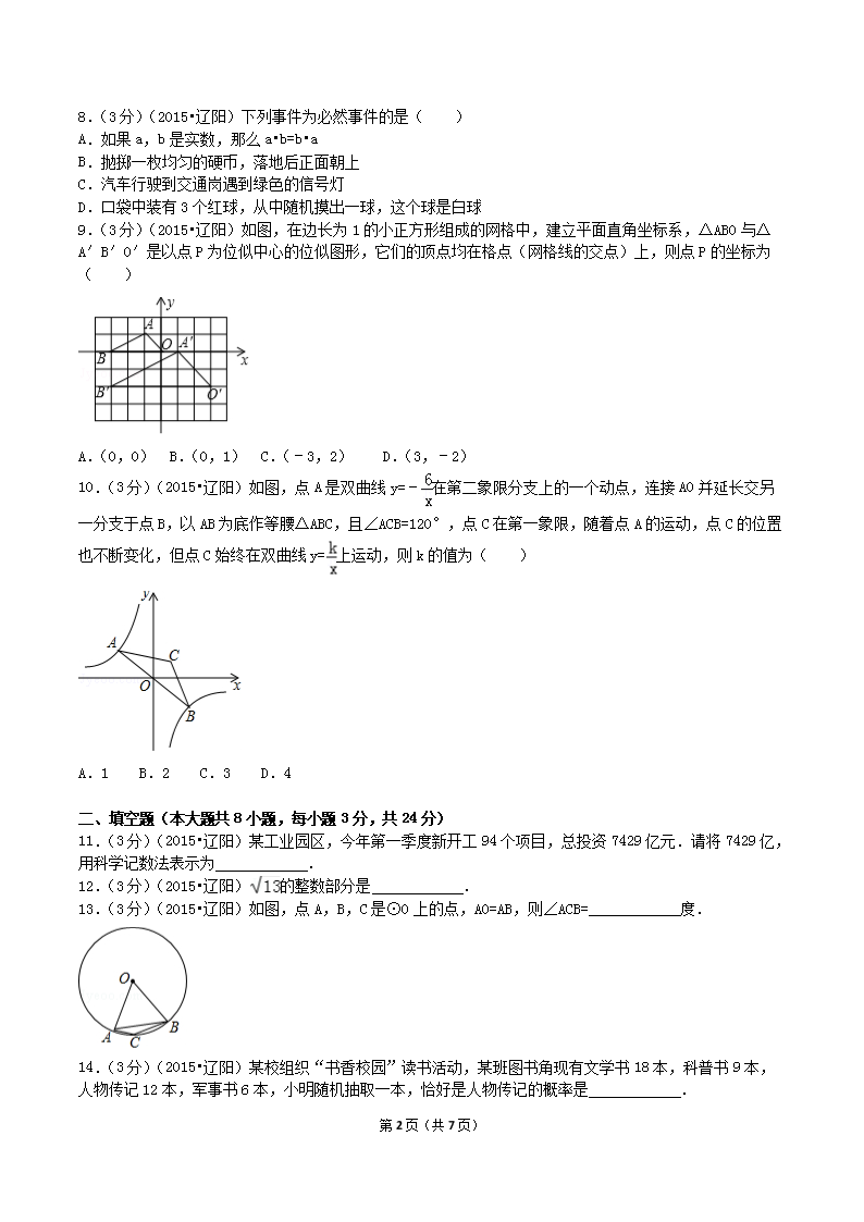 【文档名称】 2015年辽宁省辽阳市中考数学真题及答案(Word版).doc