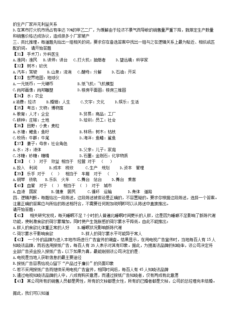 【文档名称】 2010广西公务员行测考试真题及答案(Word版).doc