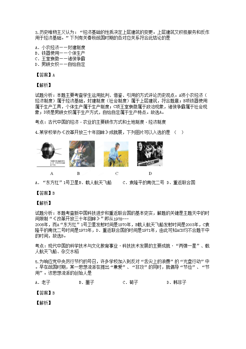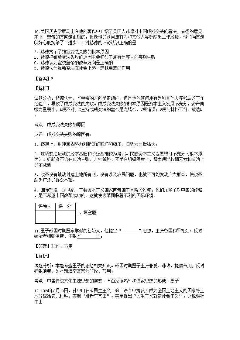 【文档名称】 2018-2019年广西历史高二水平会考真题及答案解析(Word版).doc