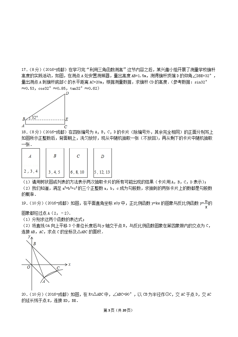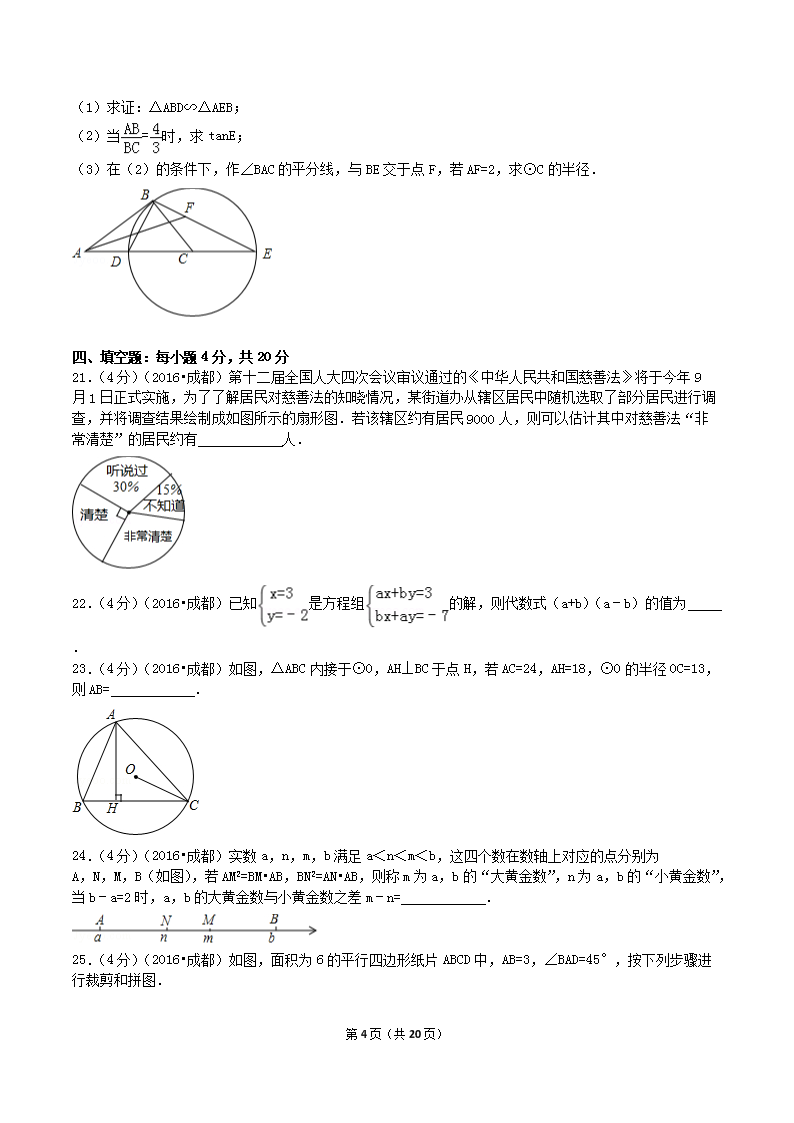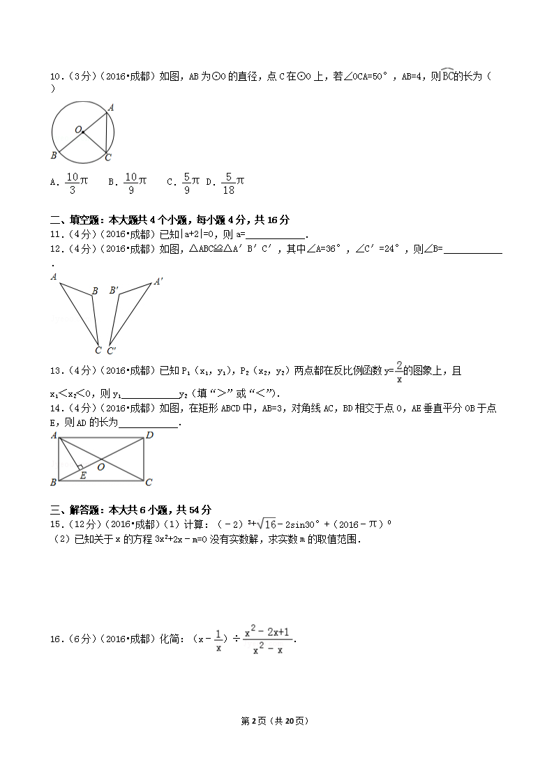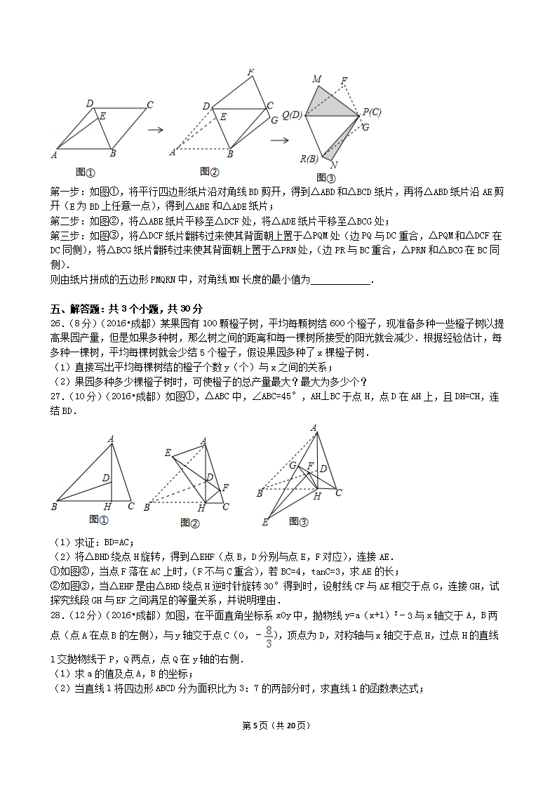 【文档名称】 2016年四川省成都市中考数学真题及答案(Word版).doc