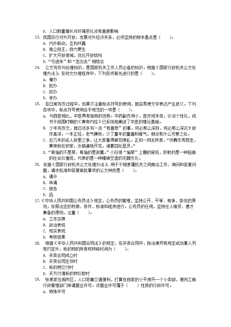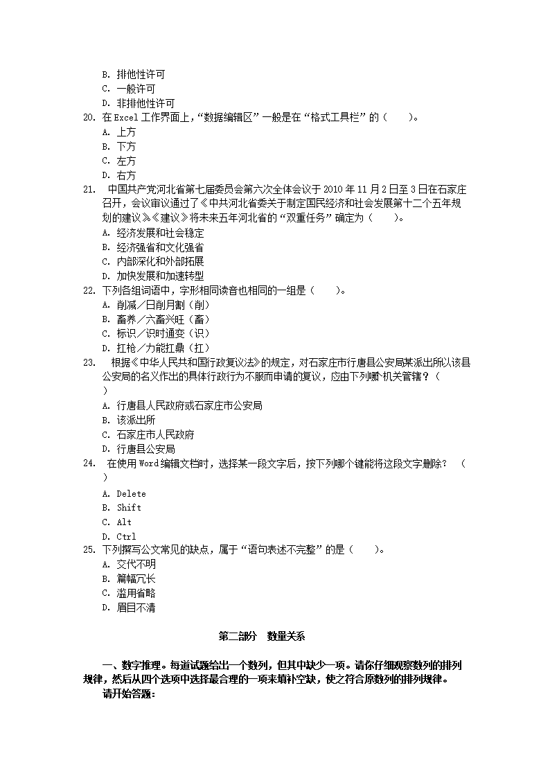 【文档名称】 2010年河北公务员行测考试真题及答案(Word版).doc