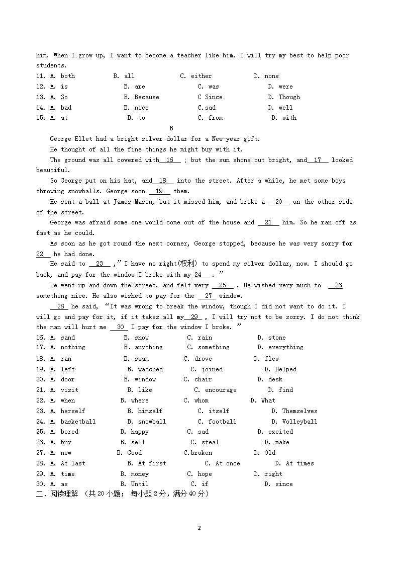 【文档名称】 2016年四川省泸州市中考英语真题及答案(Word版).doc