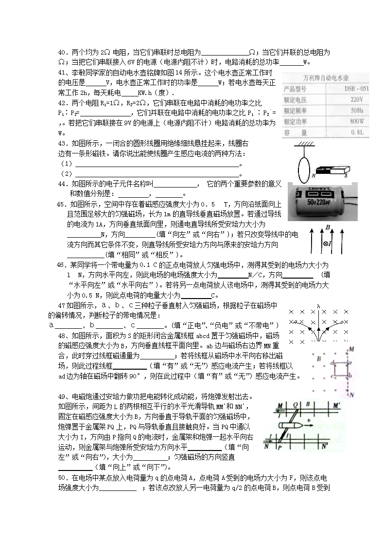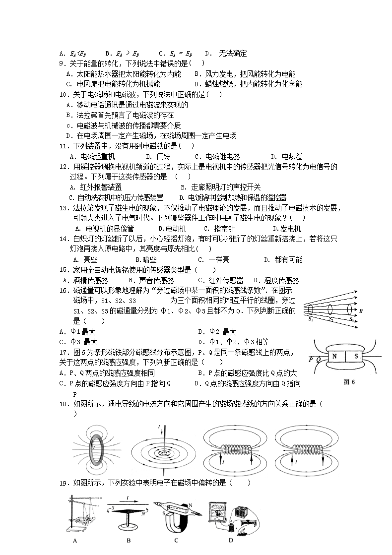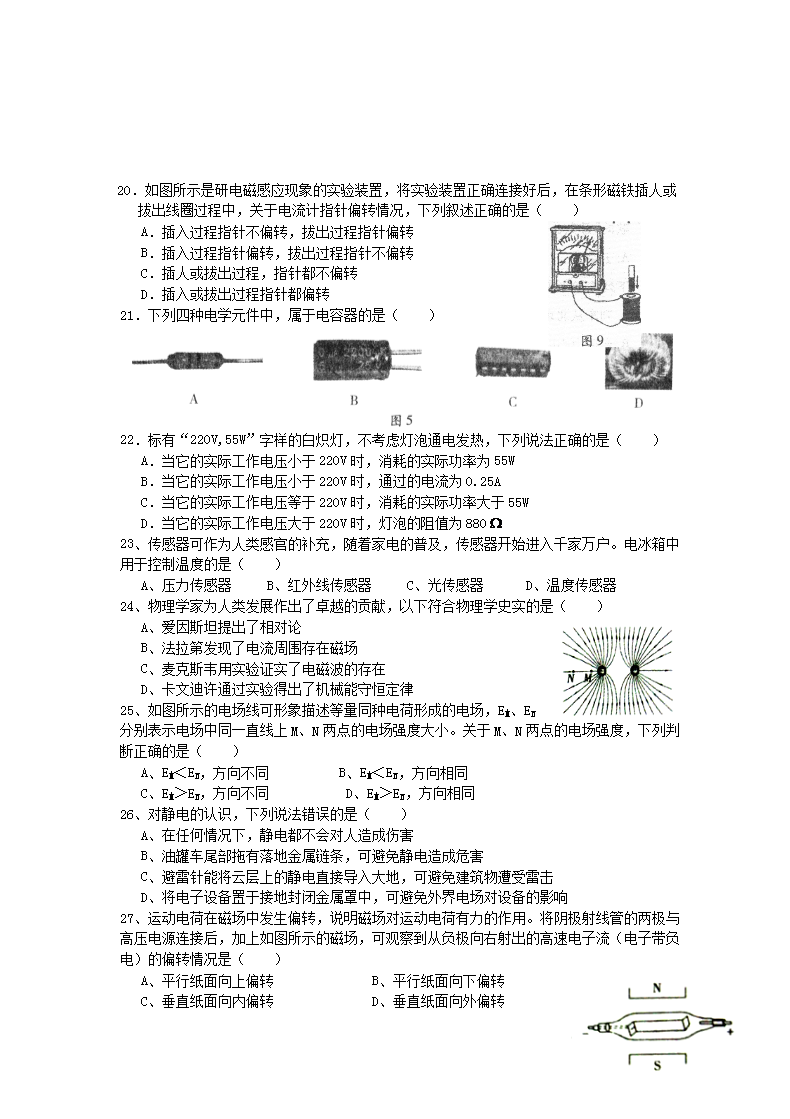 【文档名称】 福建高中物理会考历年部分真题(Word版).doc