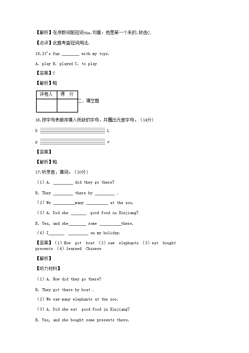 【文档名称】 2018-2019年湖北英语小升初真题及答案(Word版).doc