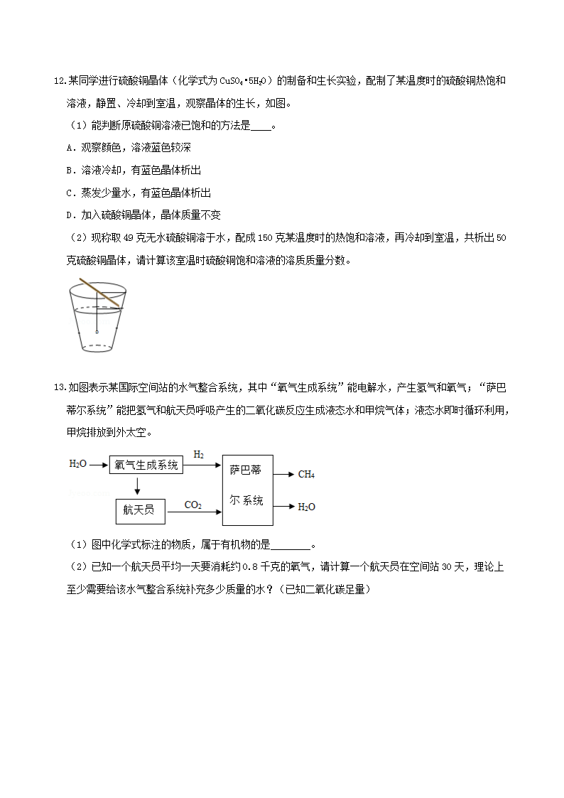 【文档名称】 2019浙江省台州市中考化学真题及答案(Word版).doc