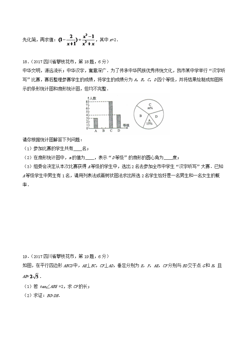 【文档名称】 2017年四川省攀枝花市中考数学真题及答案(Word版).doc