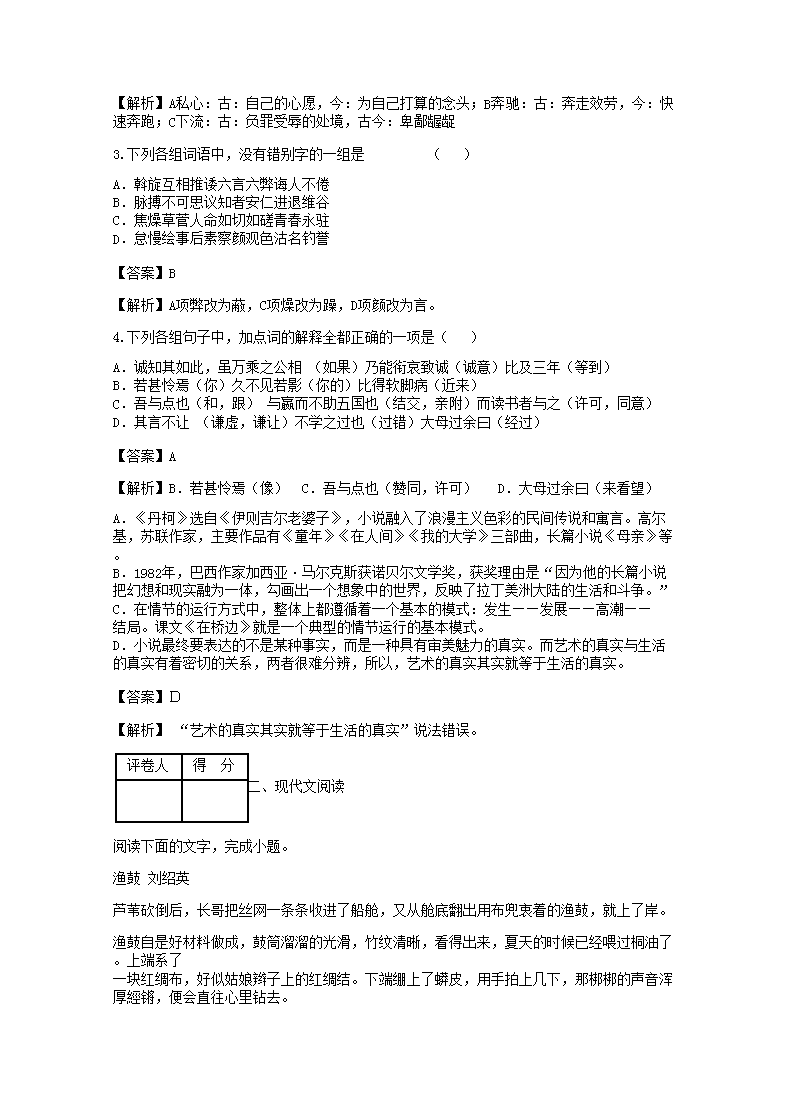 【文档名称】 2018-2019年河南语文高二水平会考真题及答案(Word版).doc