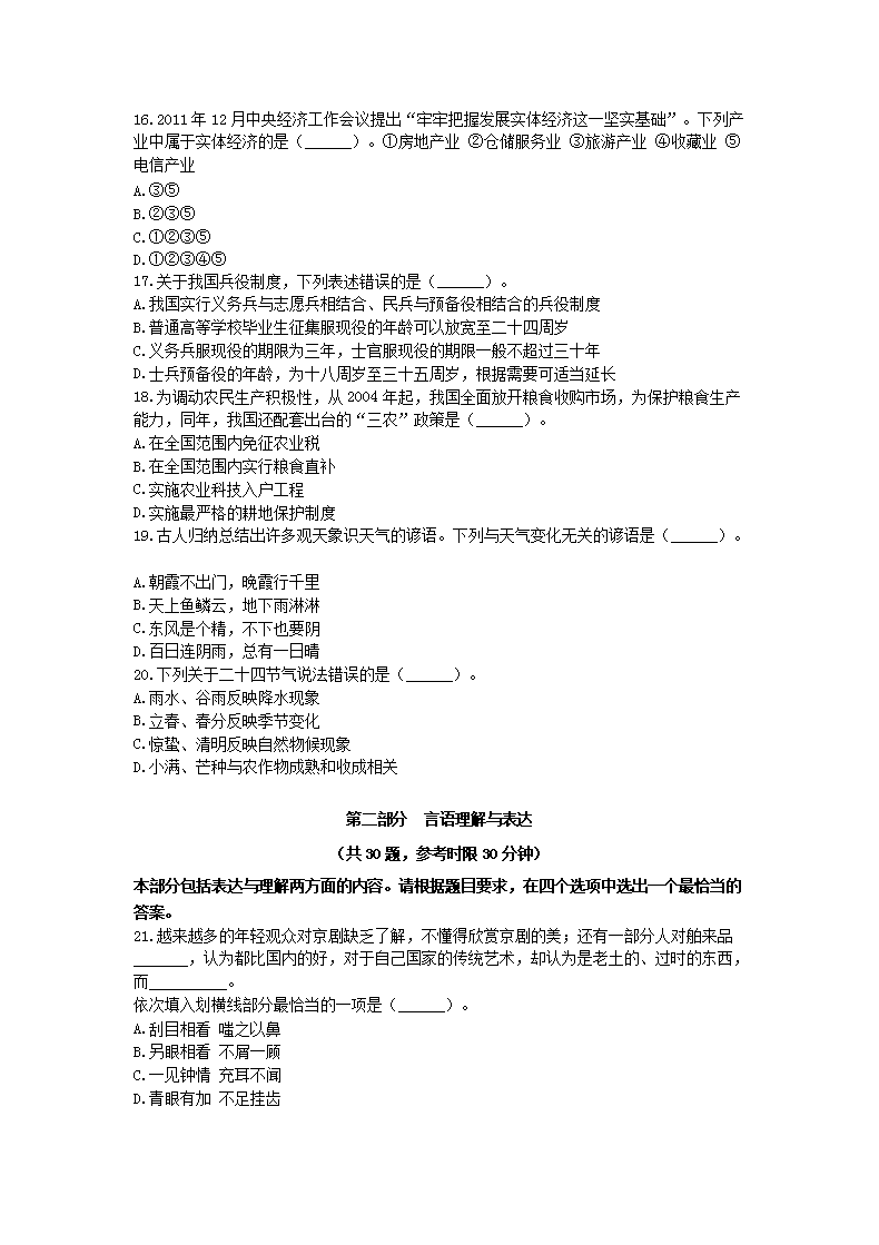 【文档名称】 2012年辽宁公务员考试行测真题及答案(Word版).doc