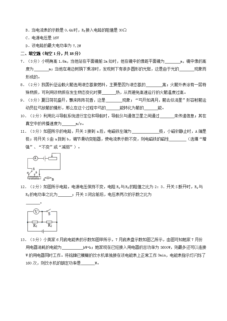 【文档名称】 2019年甘肃省天水市中考物理真题及答案(Word版).doc