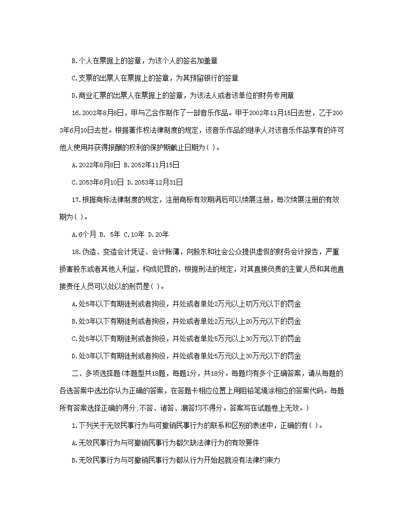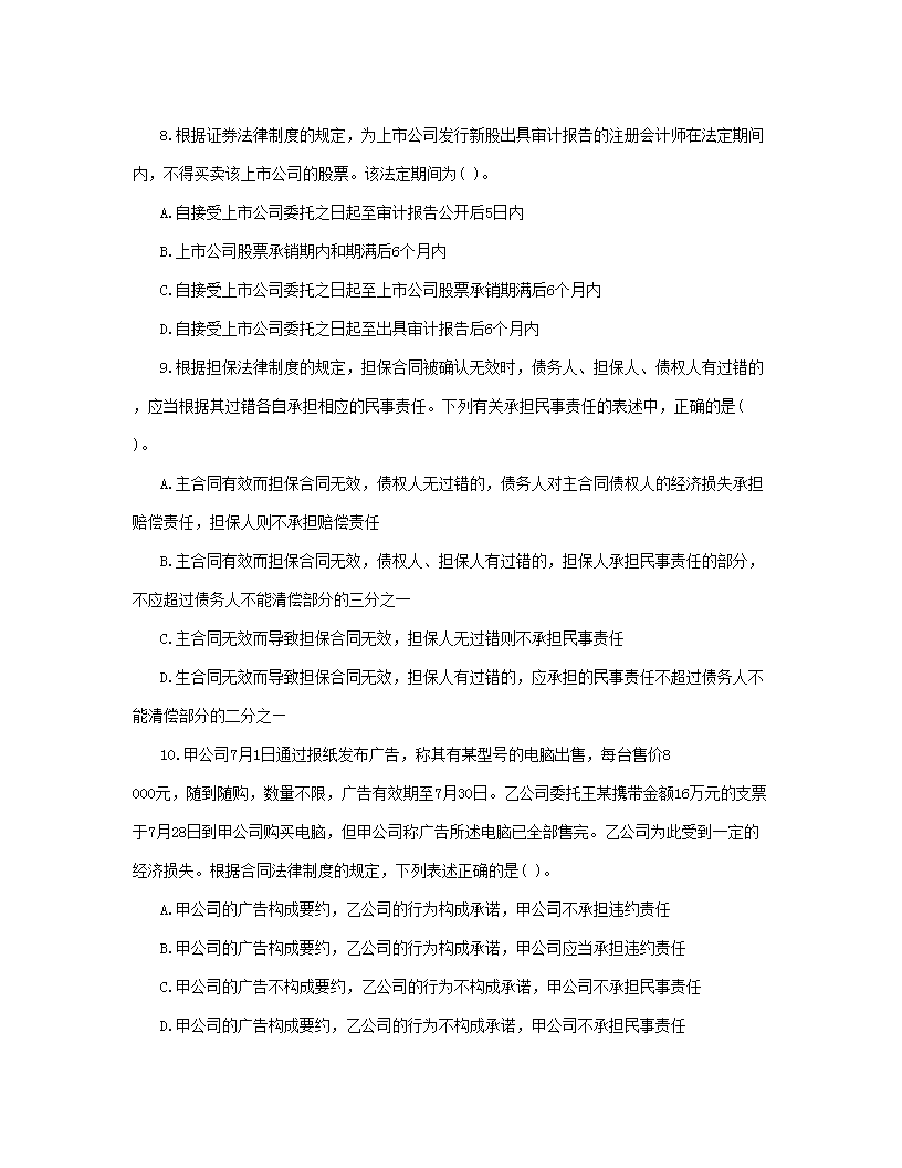 【文档名称】 2003年注册会计师经济法考试真题(Word版).doc