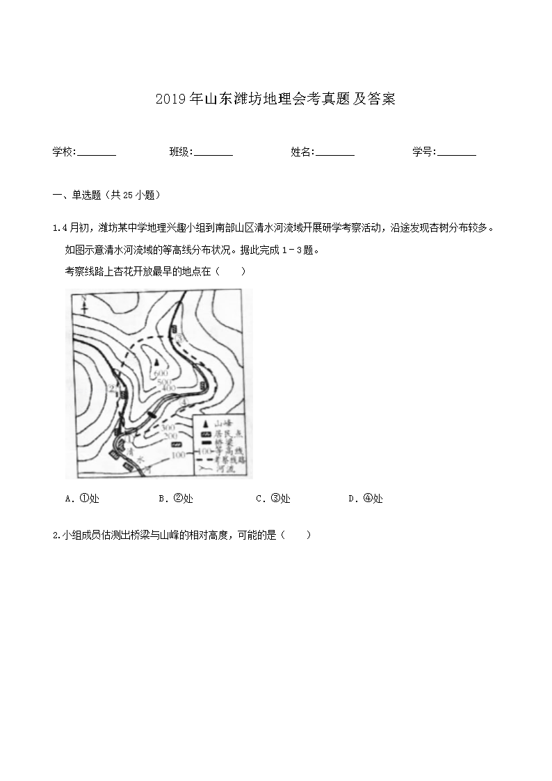 【文档预览】 无忧考网整理发布2019年山东潍坊地理会考真题及答案(Word版),前五页预览如下: