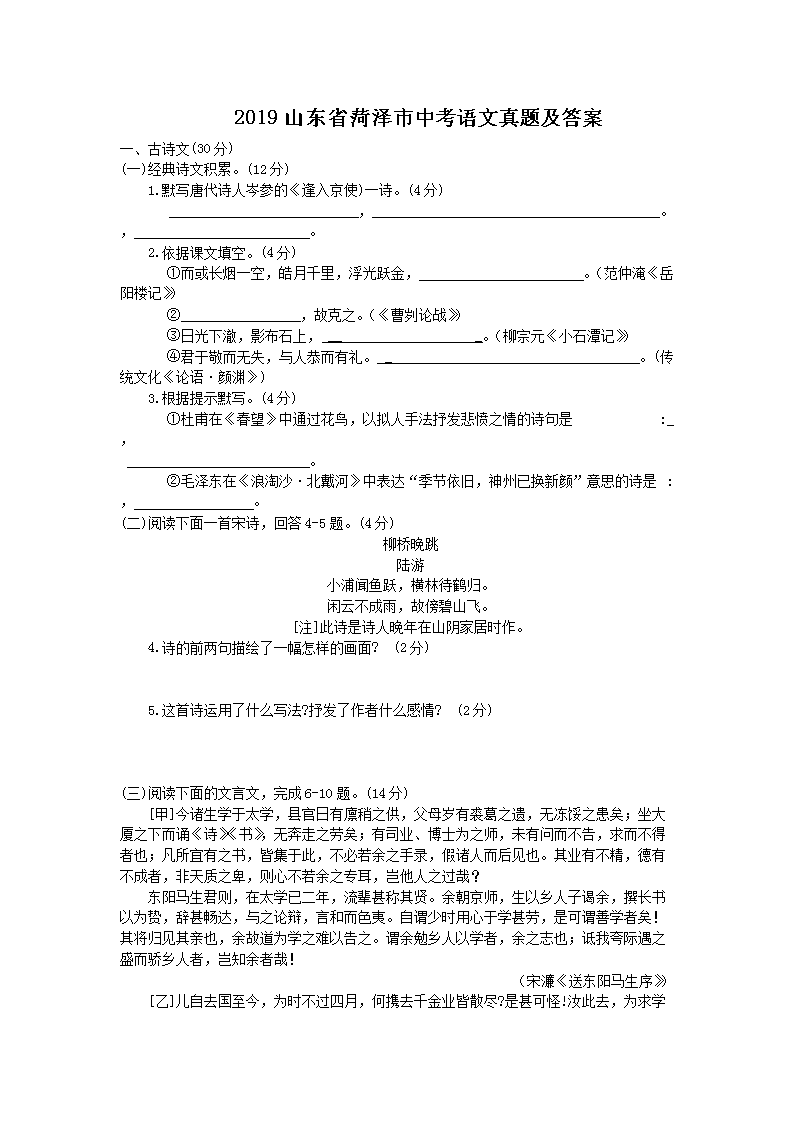 【文档名称】 2019山东省菏泽市中考语文真题及答案(Word版).doc