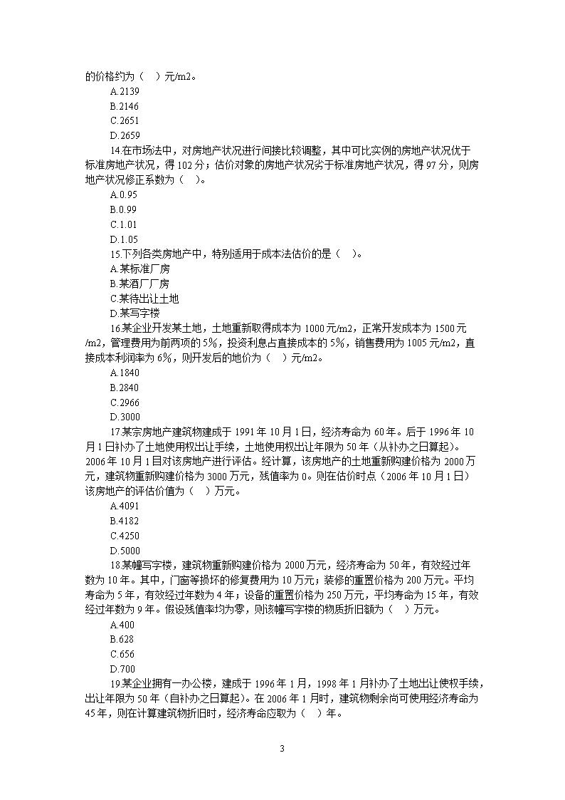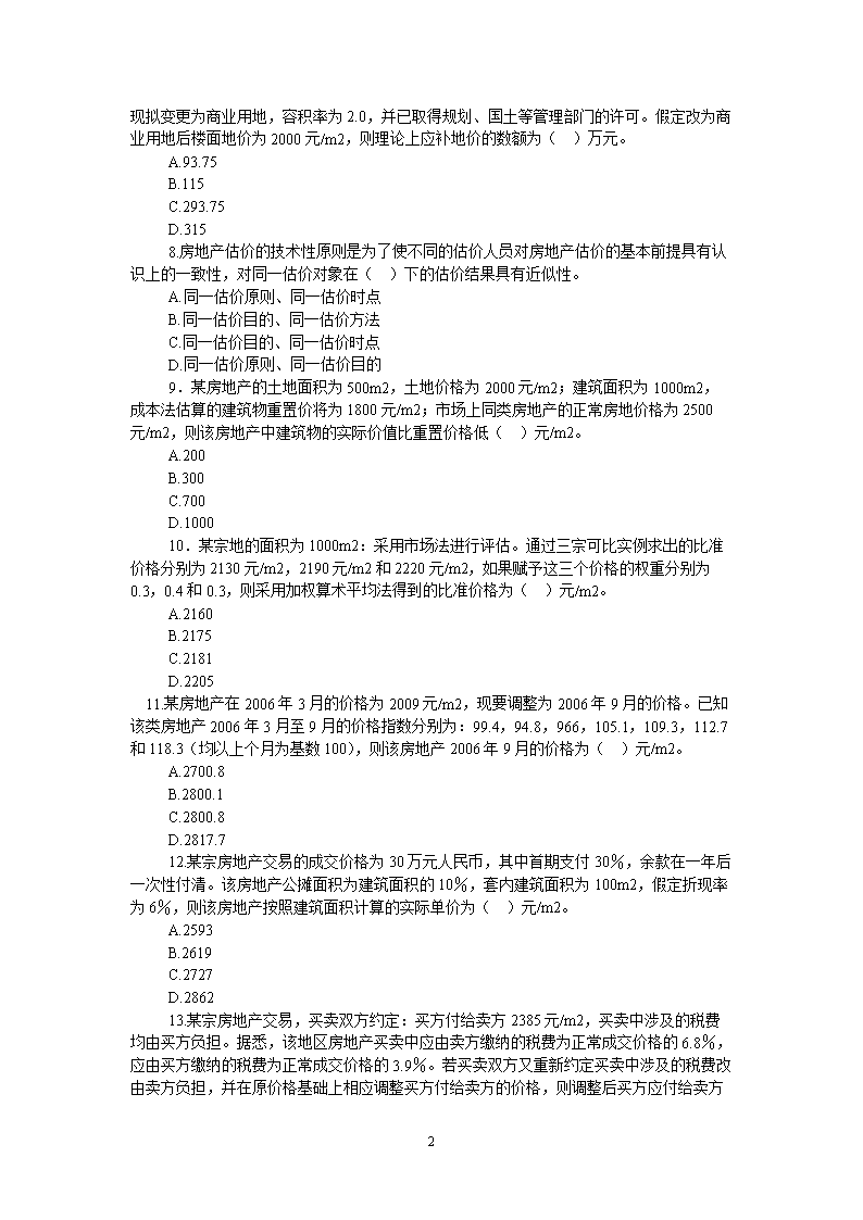 【文档名称】 2006年房地产估价师估价理论与方法考试真题及答案(Word版).doc