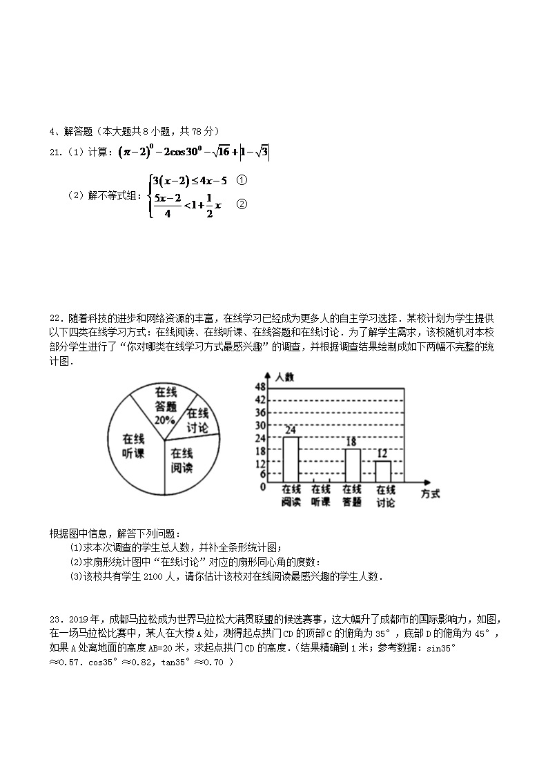【文档预览】 无忧考网整理发布2019年四川省成都市中考数学真题及答案(Word版),前五页预览如下: