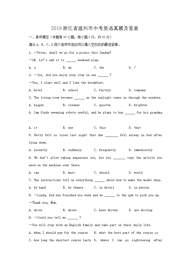 【文档预览】 无忧考网整理发布2019浙江省温州市中考语文真题及答案(Word版),前五页预览如下: