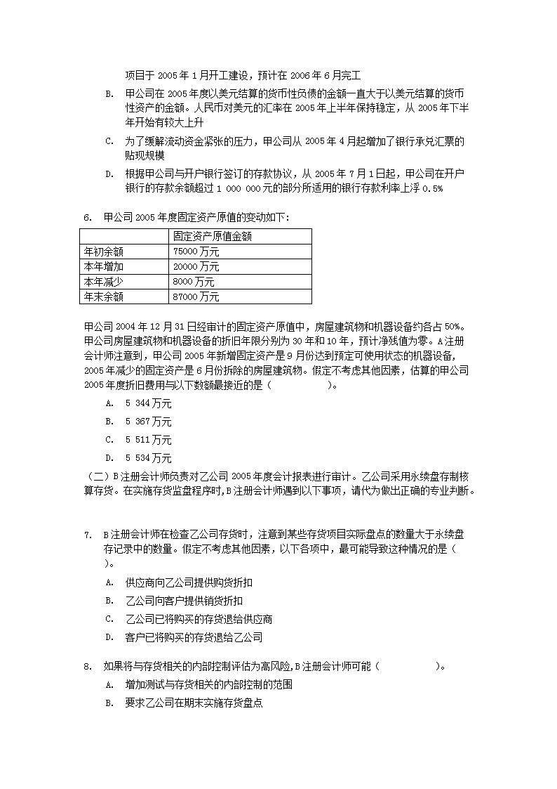【文档预览】 无忧考网整理发布2006年注册会计师审计考试真题及答案(Word版),前五页预览如下: