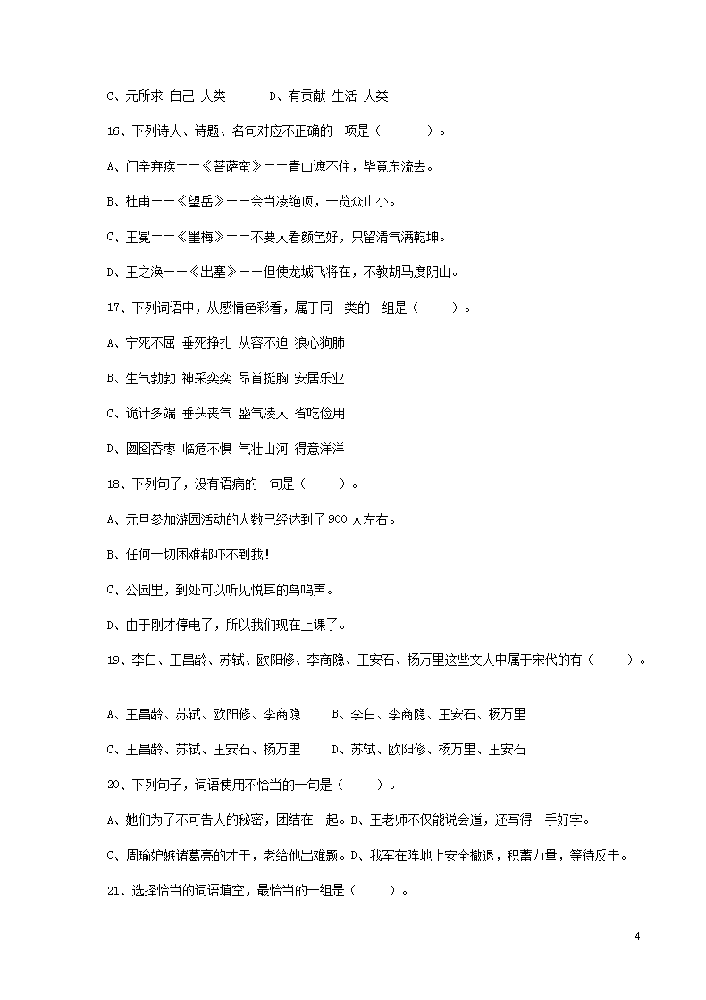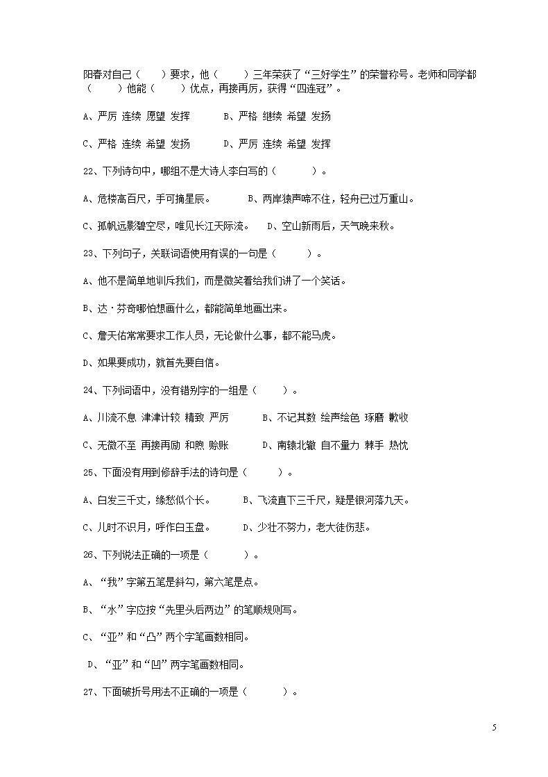 【文档预览】 无忧考网整理发布四川成都七中实验学校小升初语文真题(Word版),前五页预览如下: