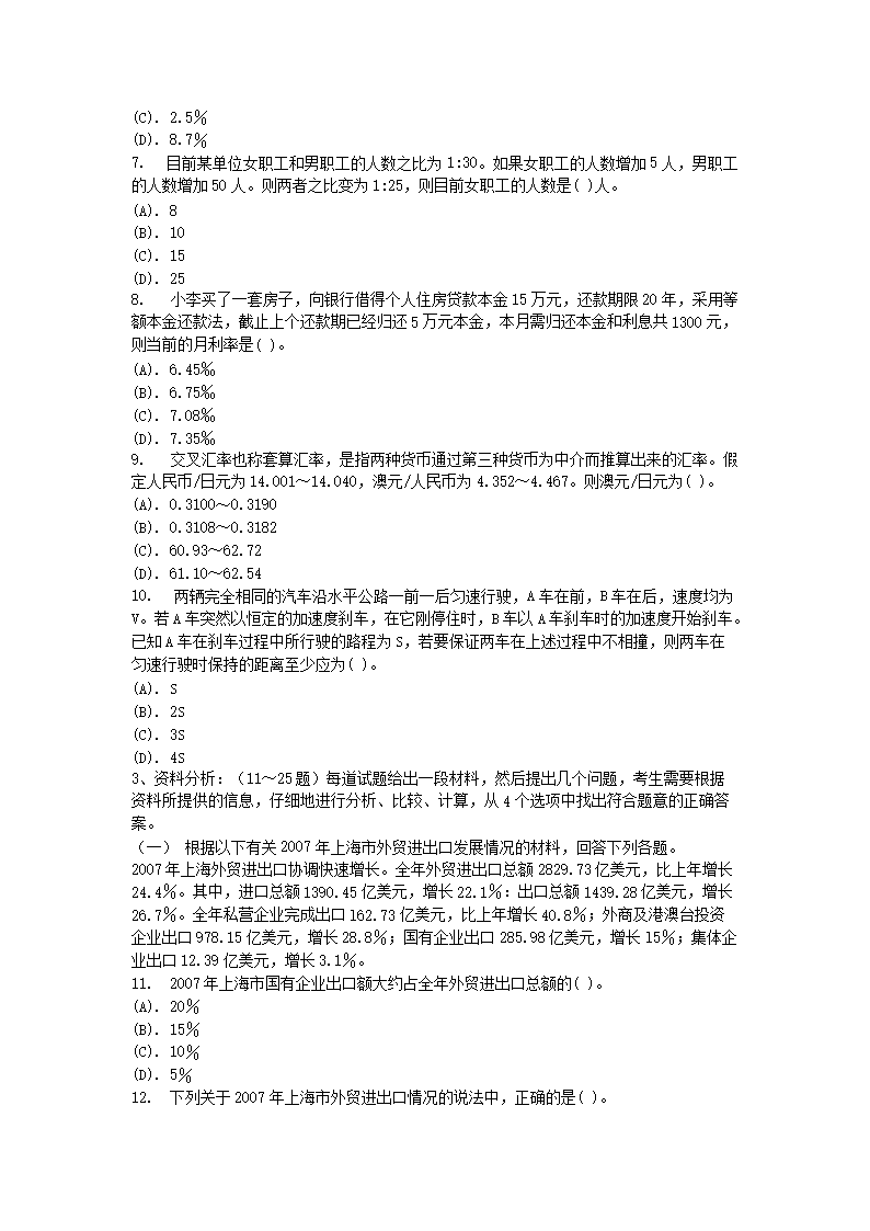 【文档名称】 2010年上海公务员行测考试真题及答案(Word版).doc