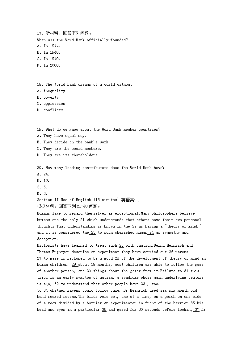 【文档名称】 2012年9月公共英语四级考试真题及答案(Word版).doc