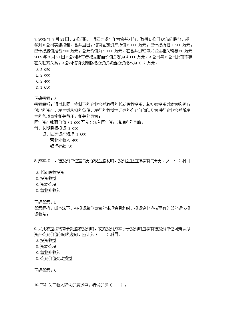 【文档名称】 2010年四川会计继续教育考试真题及答案(Word版).doc