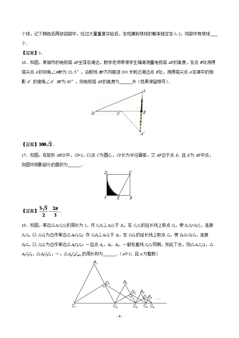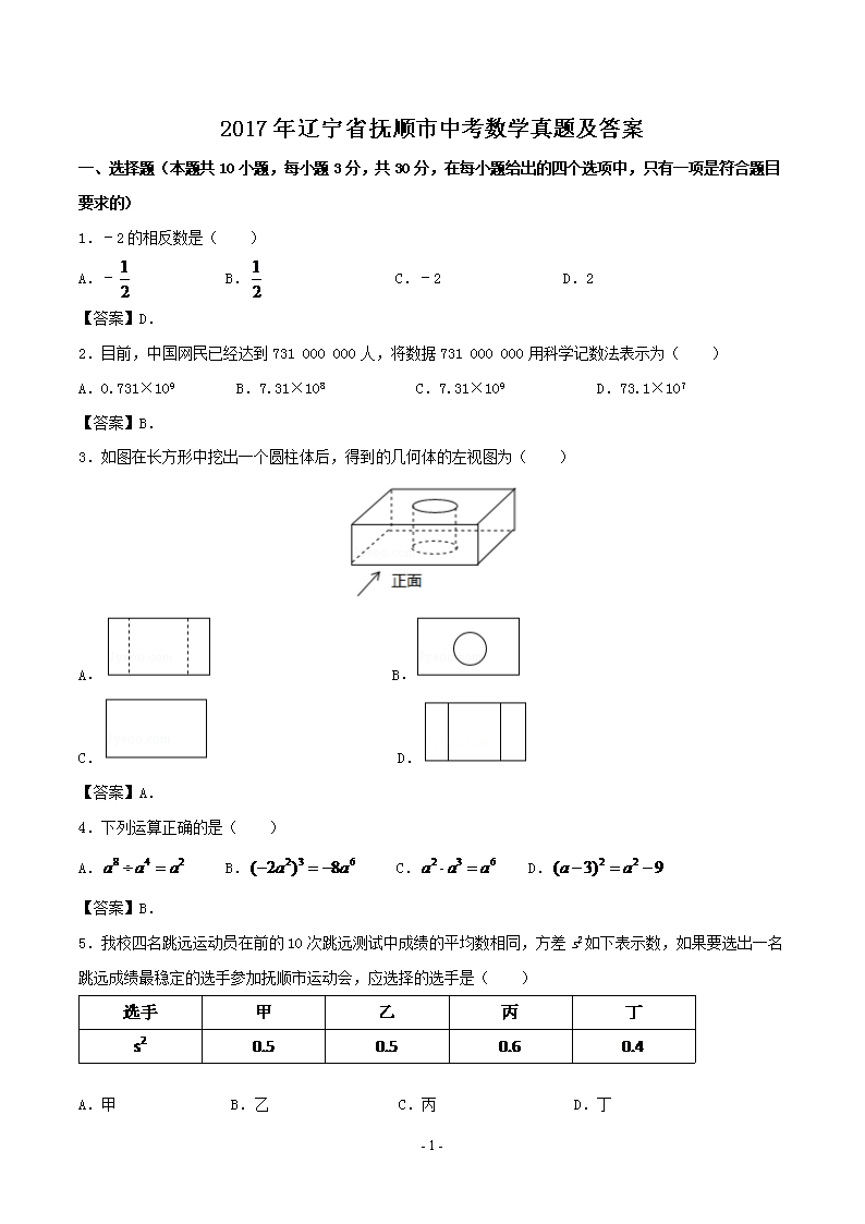 【文档名称】 2017年辽宁省抚顺市中考数学真题及答案(Word版).doc