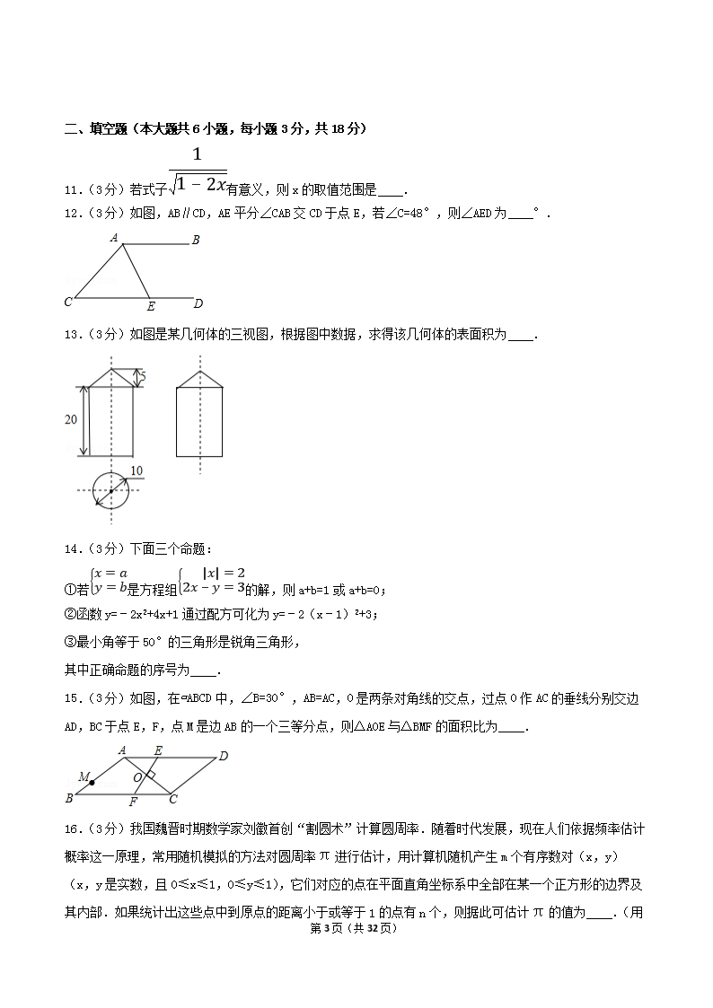 【文档名称】 2017年内蒙古呼和浩特市中考数学真题及答案(Word版).doc