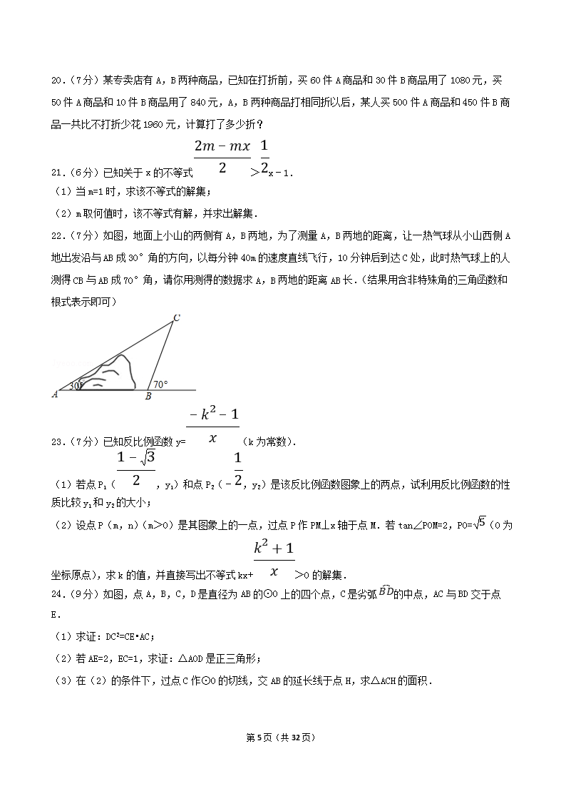 【文档预览】 无忧考网整理发布2017年内蒙古呼和浩特市中考数学真题及答案(Word版),前五页预览如下: