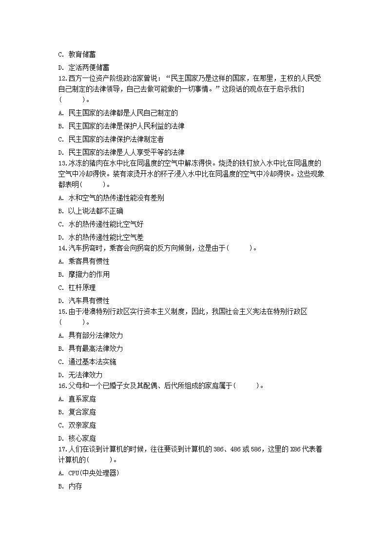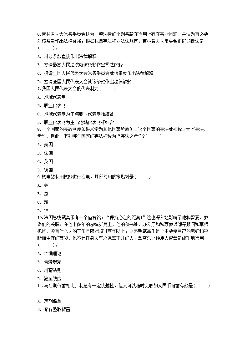【文档名称】 2011年吉林公务员行测考试真题及答案乙级(Word版).doc