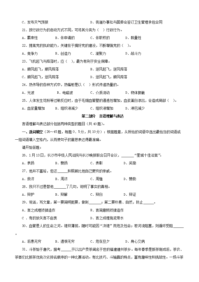 【文档名称】 2009湖南公务员行测考试真题及答案(Word版).doc
