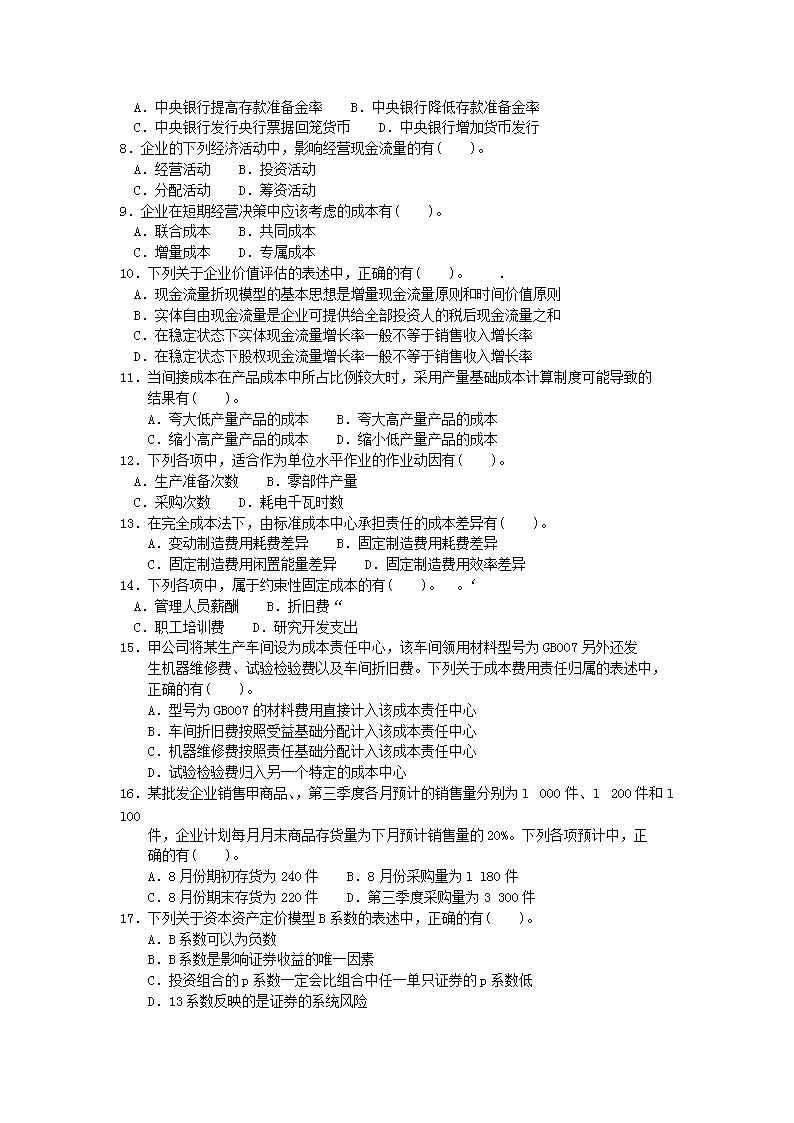 【文档预览】 无忧考网整理发布2009年注册会计师财务成本管理考试真题(Word版),前五页预览如下: