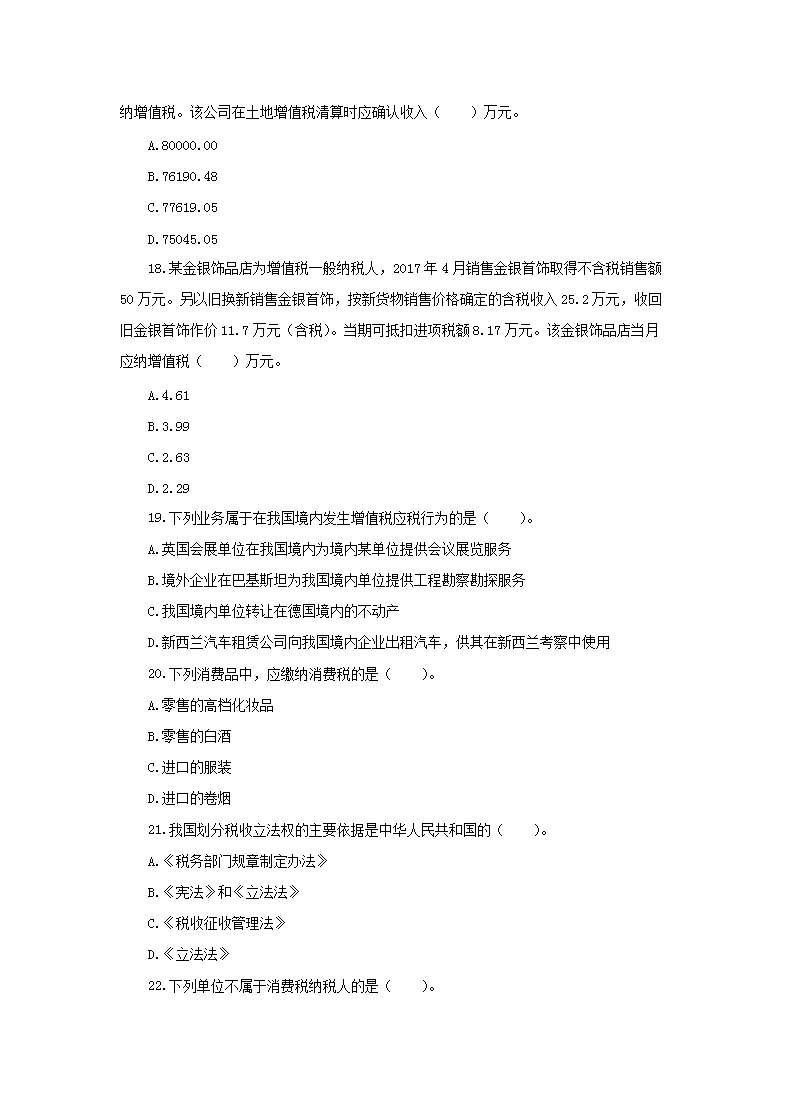 【文档预览】 无忧考网整理发布2017年税务师考试税法一考试真题及答案(Word版),前五页预览如下: