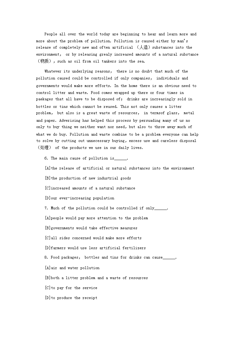 【文档名称】 2003年4月北京成人英语三级考试真题(Word版).doc
