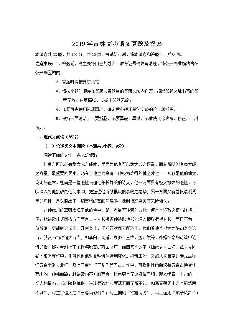 【文档名称】 2019年吉林高考语文真题及答案(Word版).doc