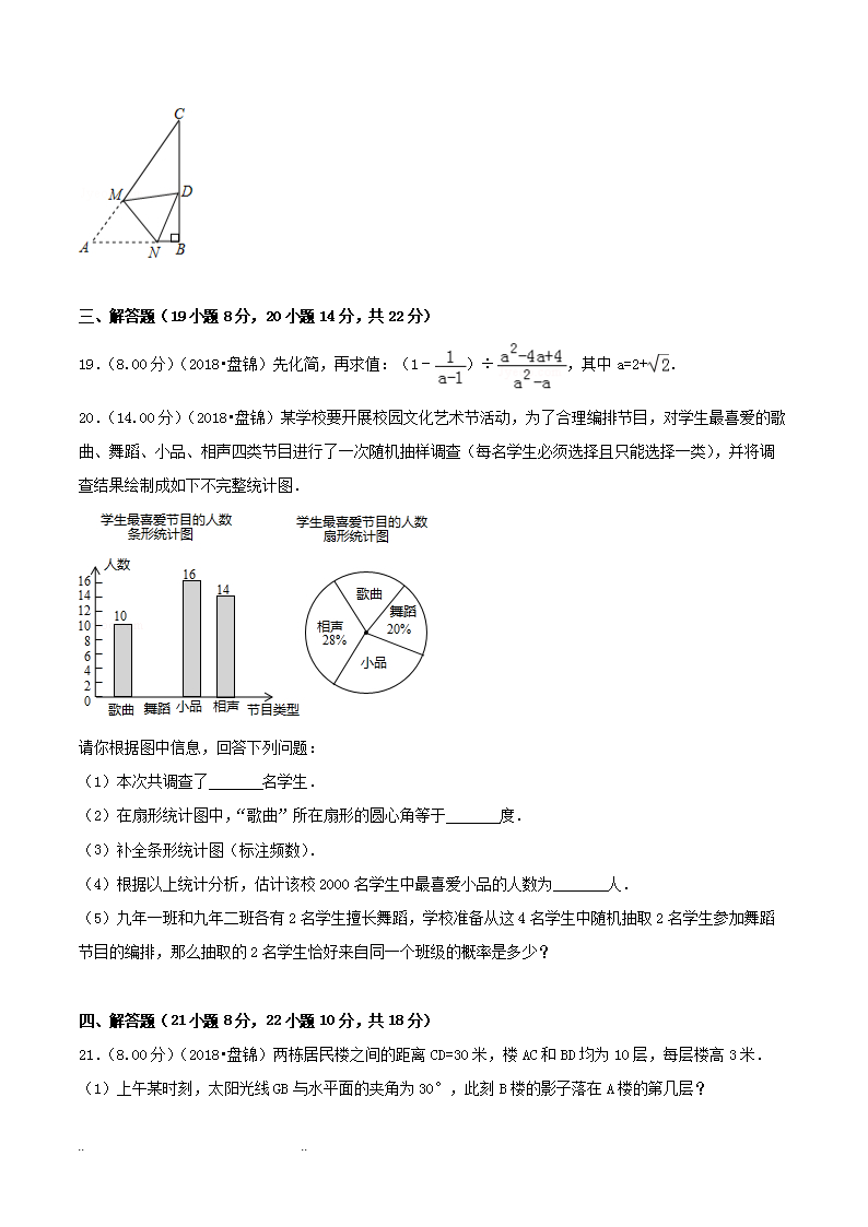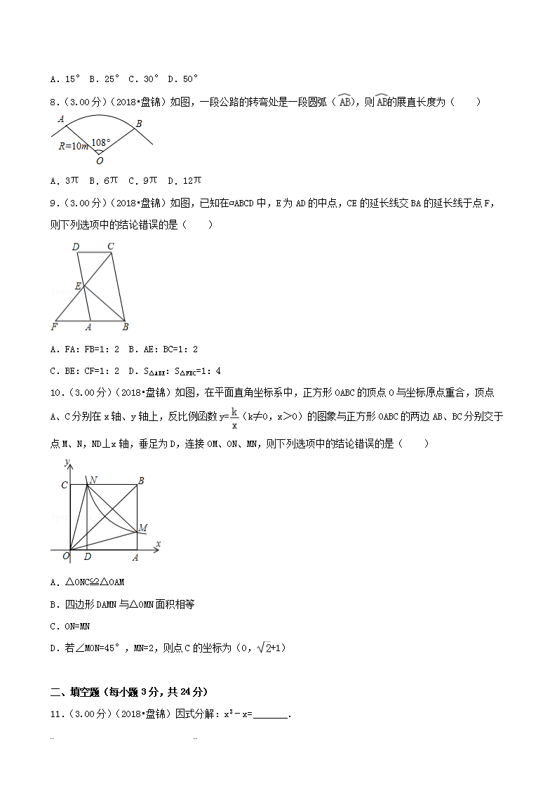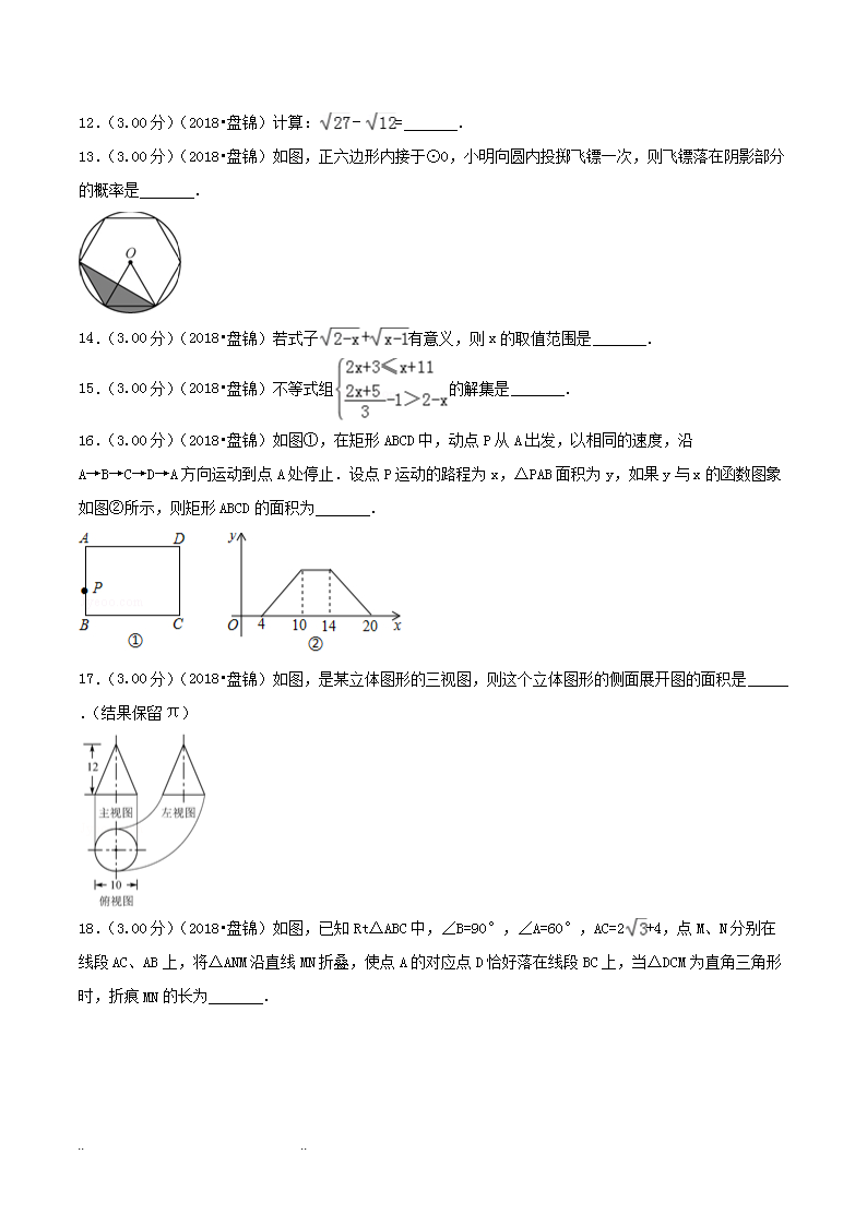 【文档名称】 2018年辽宁盘锦市中考数学真题及答案(Word版).doc