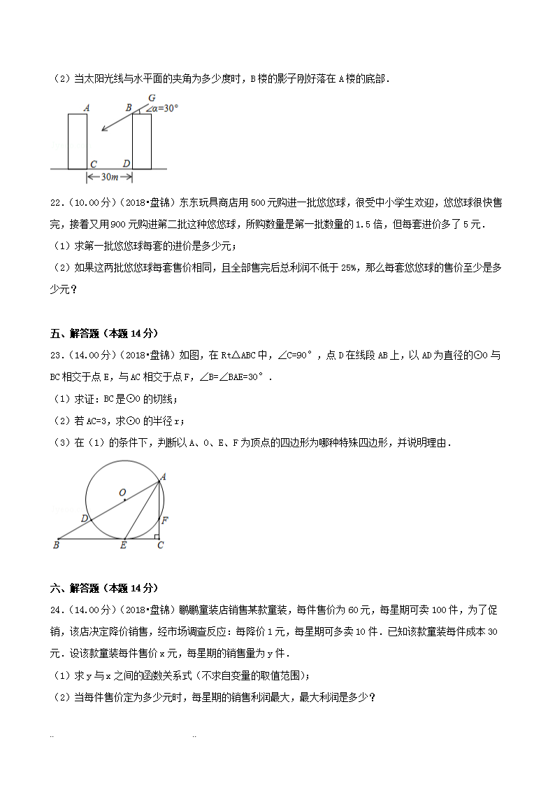【文档预览】 无忧考网整理发布2018年辽宁盘锦市中考数学真题及答案(Word版),前五页预览如下: