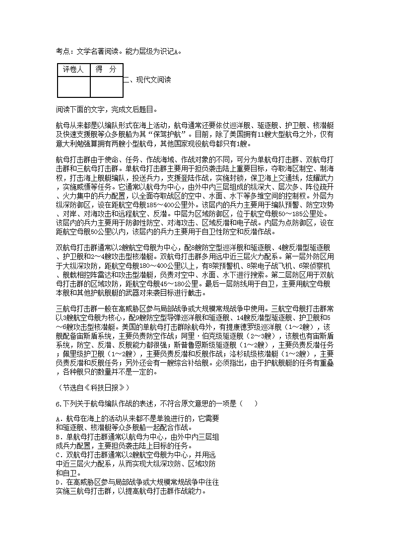 【文档名称】 2018-2019年云南高三水平语文会考真题及答案(Word版).doc