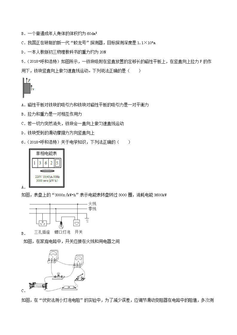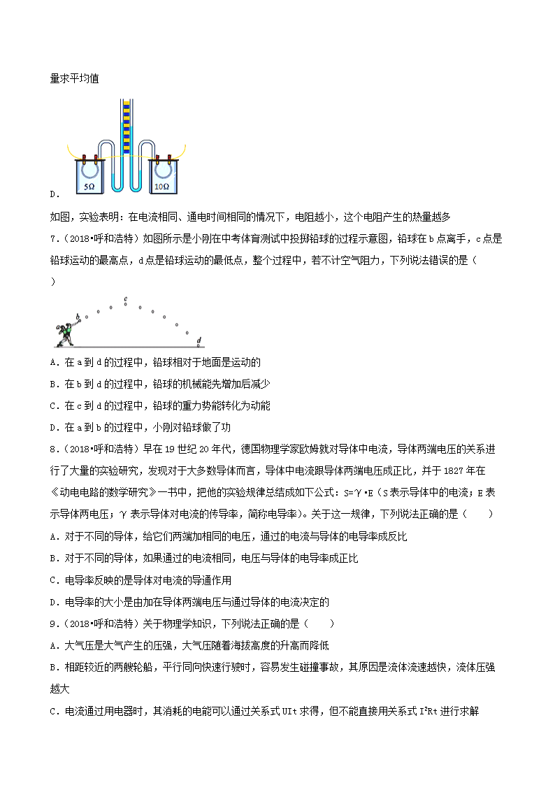 【文档名称】 2018年内蒙古呼和浩特市中考物理真题及答案(Word版).doc