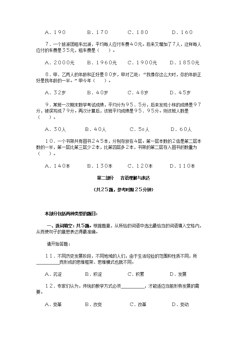 【文档名称】 2010年吉林公务员行测考试真题及答案乙级(Word版).doc