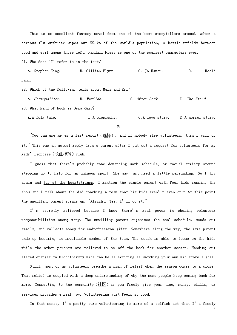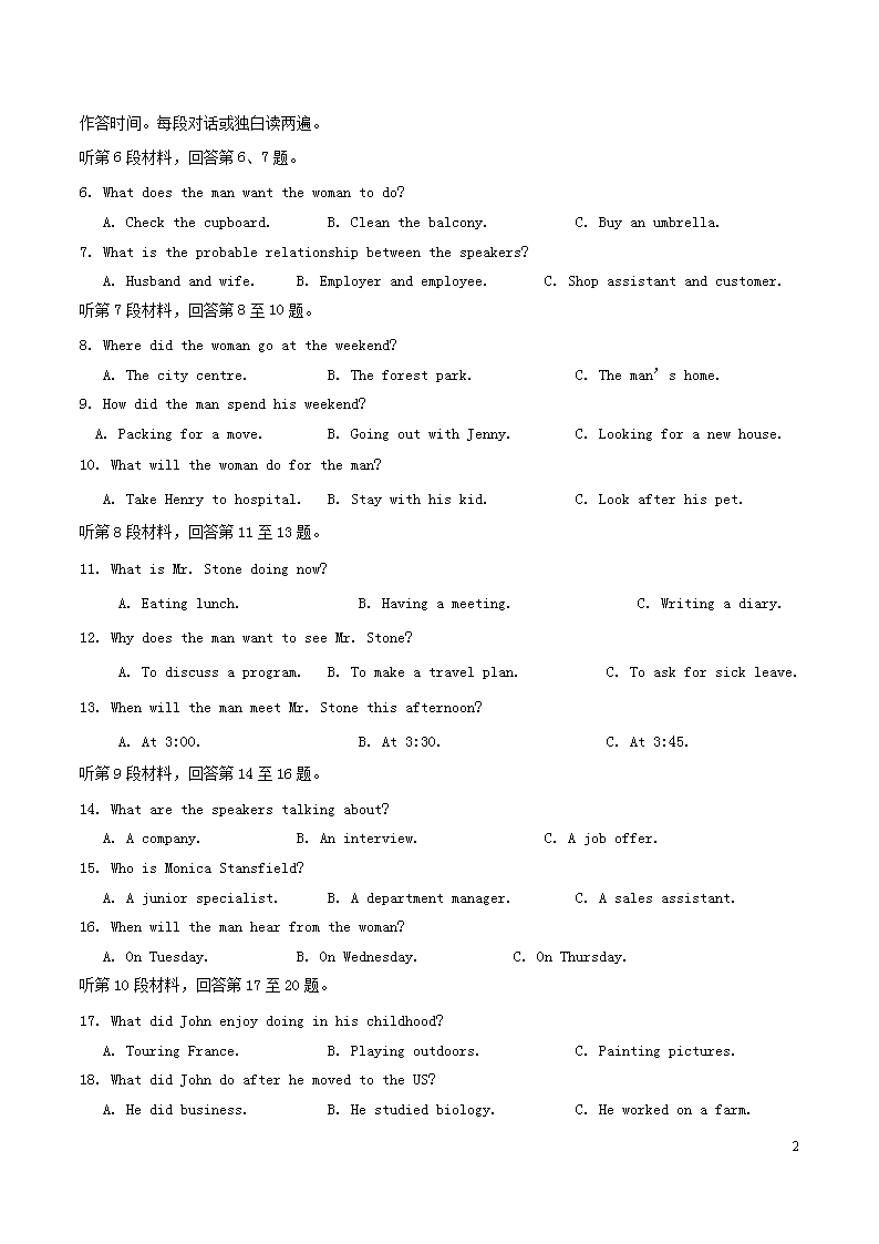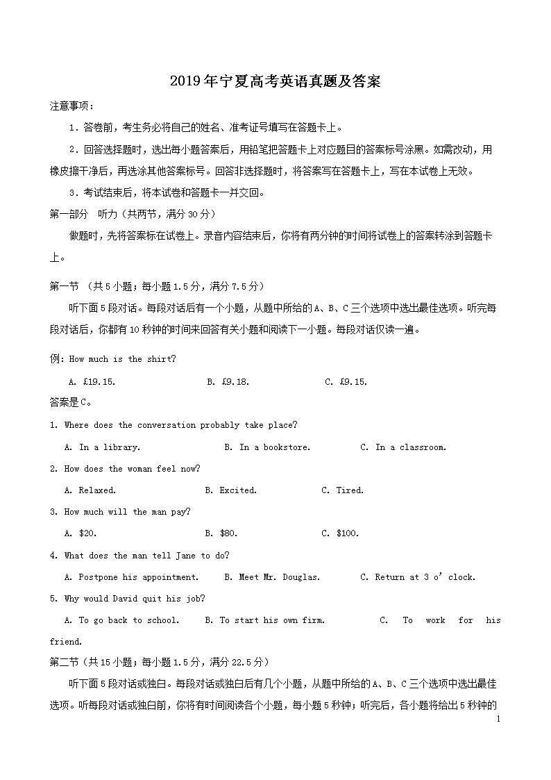 【文档预览】 无忧考网整理发布2019年宁夏高考英语真题及答案(Word版),前五页预览如下: