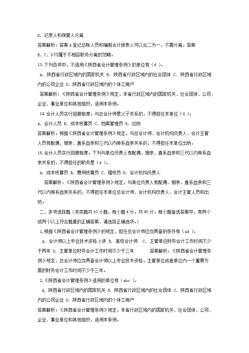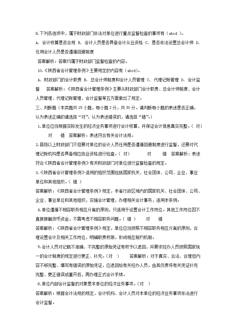 【文档名称】 2017年陕西会计继续教育考试真题及答案(Word版).doc