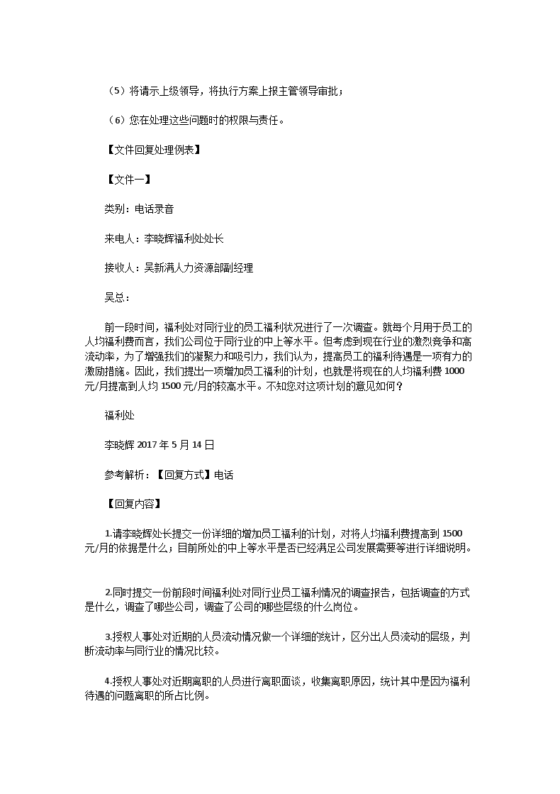 【文档预览】 无忧考网整理发布2018上半年人力资源管理师一级综合评审真题及答案(Word版),前五页预览如下: